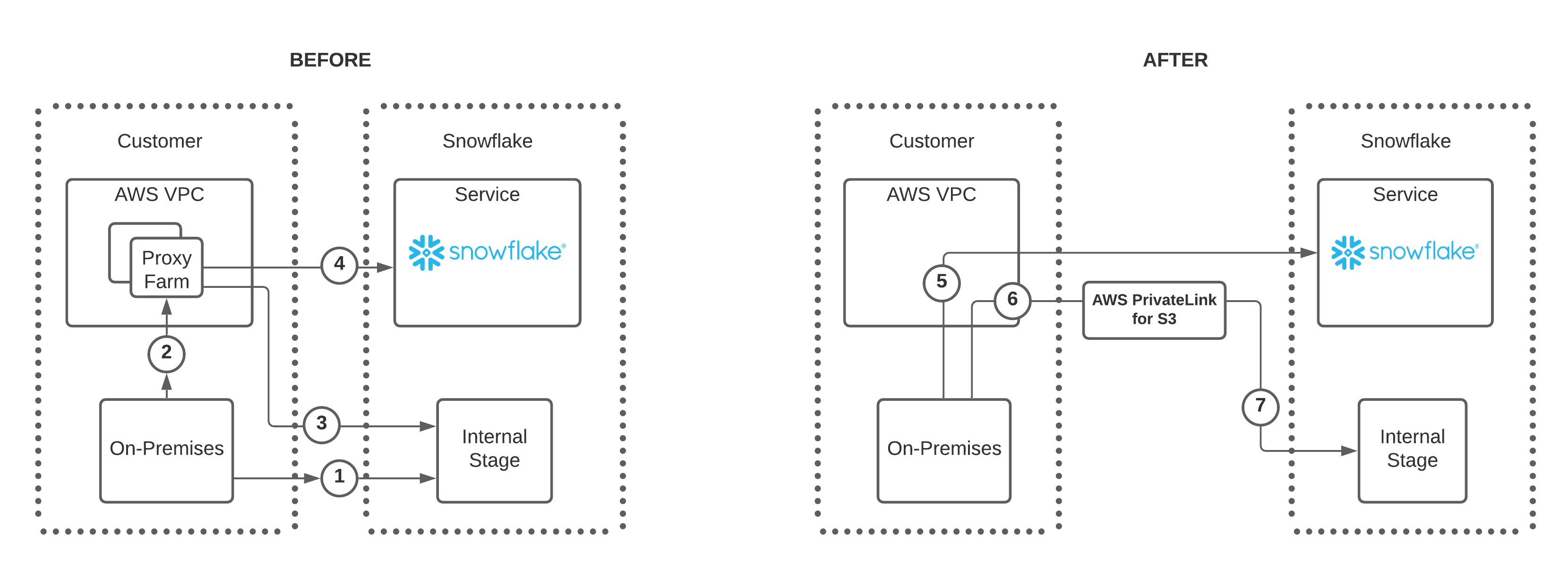 The updates in this feature remove the need to connect to Snowflake or a Snowflake internal stage through a proxy farm.