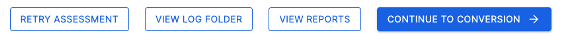 Continue to Conversion - While this is the next step in the process, we recommend reviewing the assessment results thoroughly before proceeding. Note that you’ll need an access code to run the conversion. For more details, see the conversion section of this documentation.
