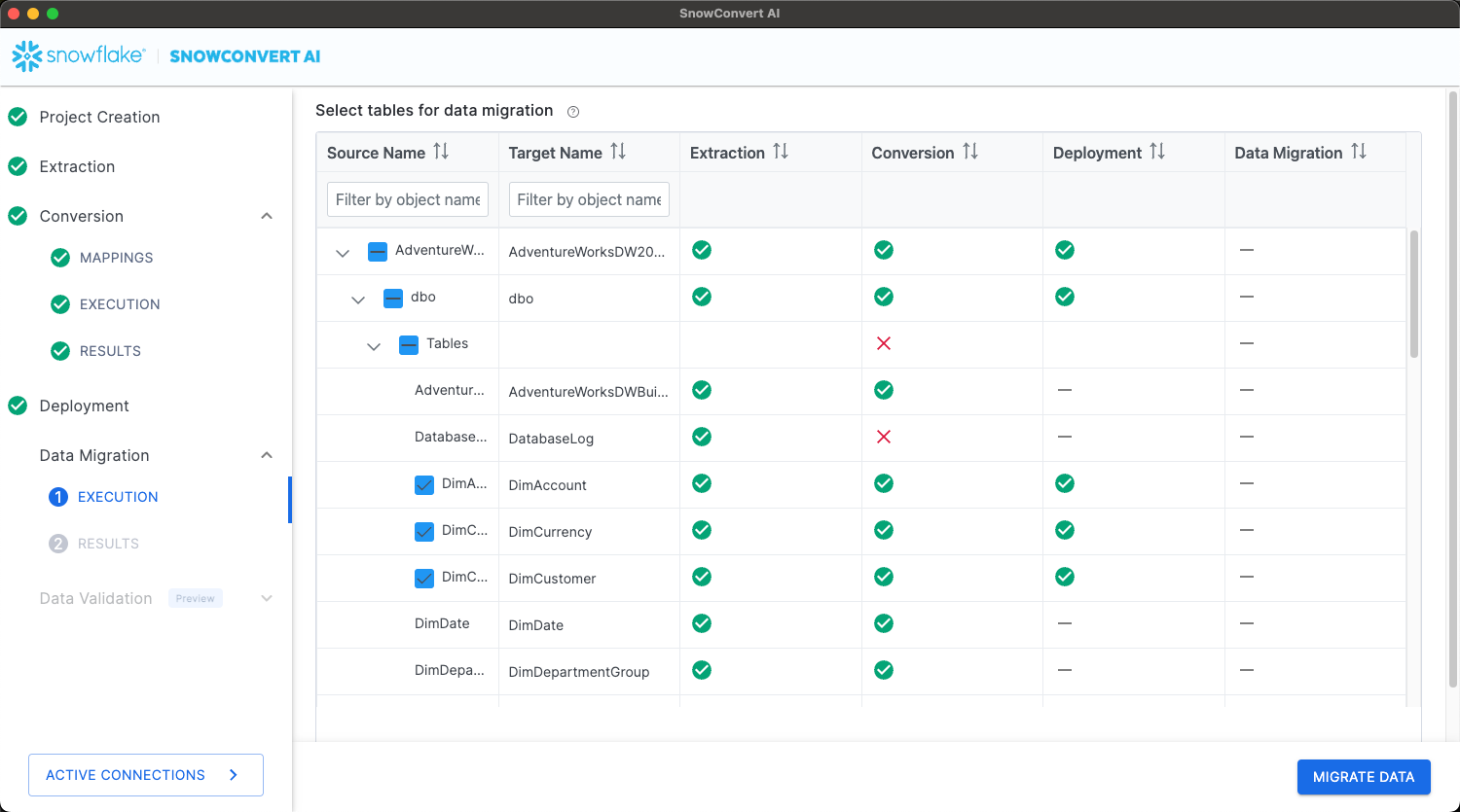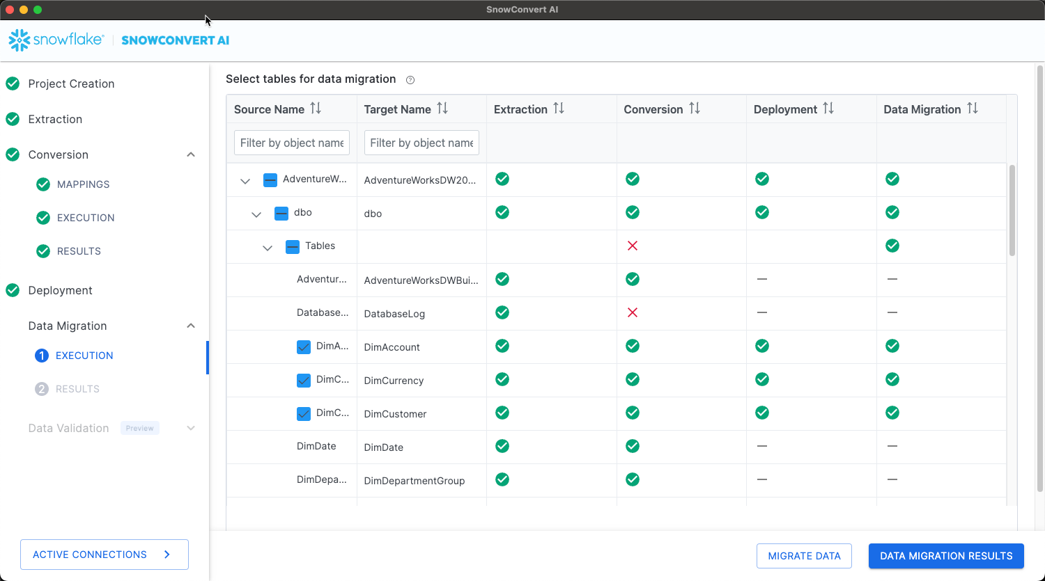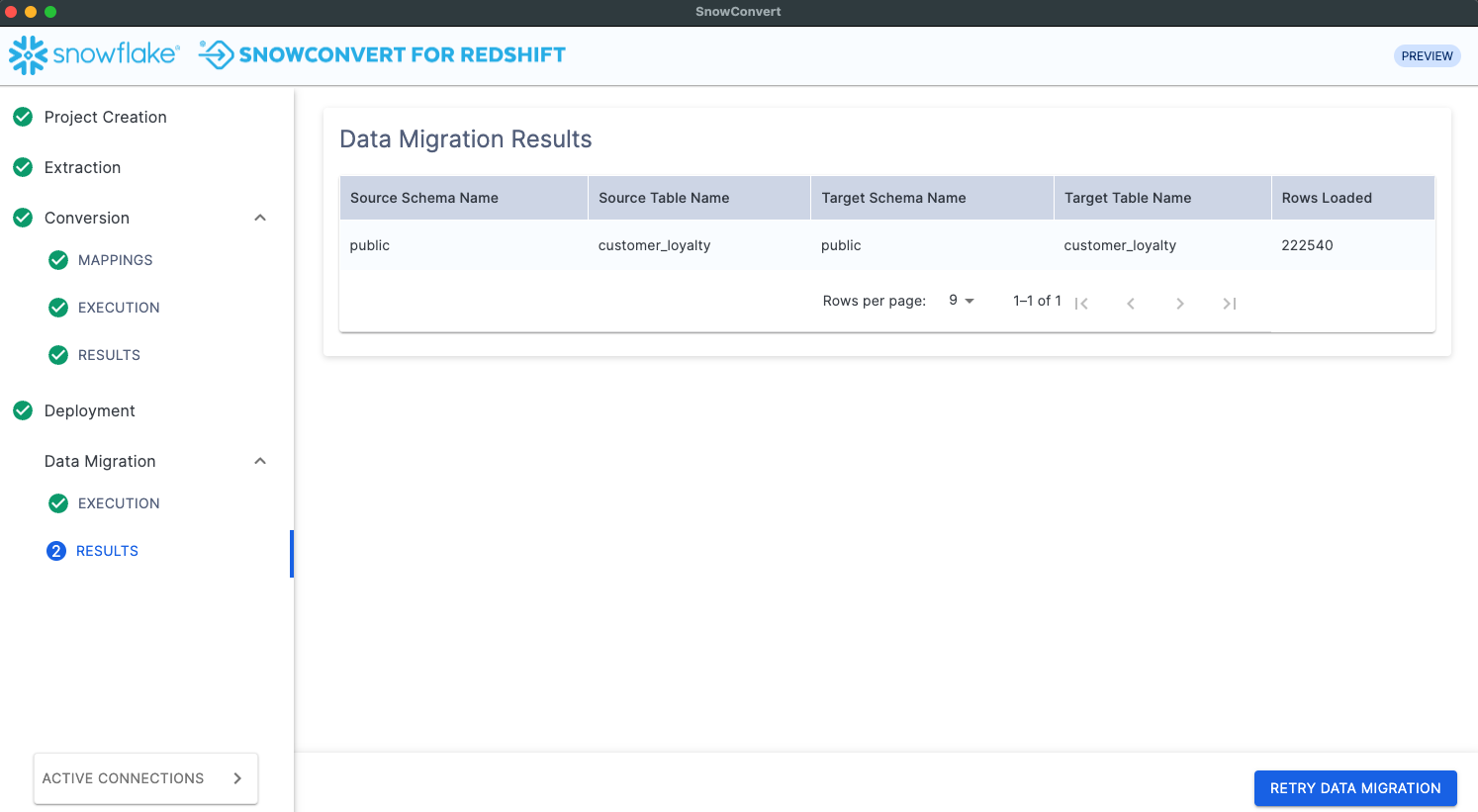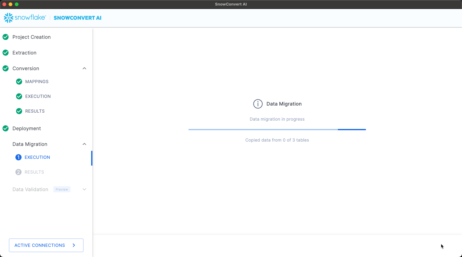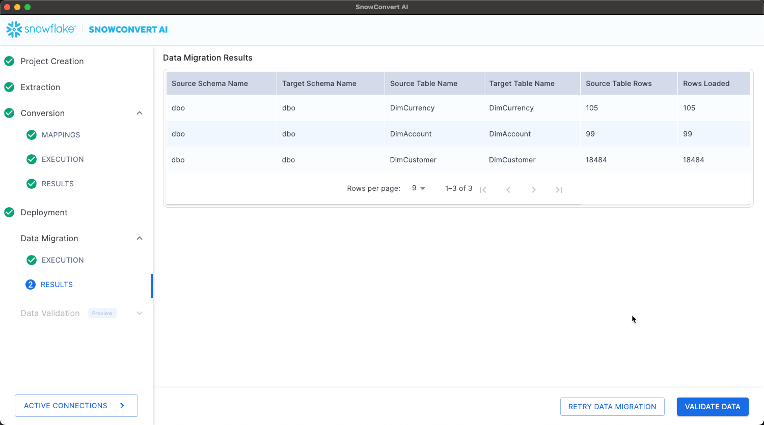 This feature completes the end-to-end migration process by transferring your actual data to the deployed database structure in Snowflake.
