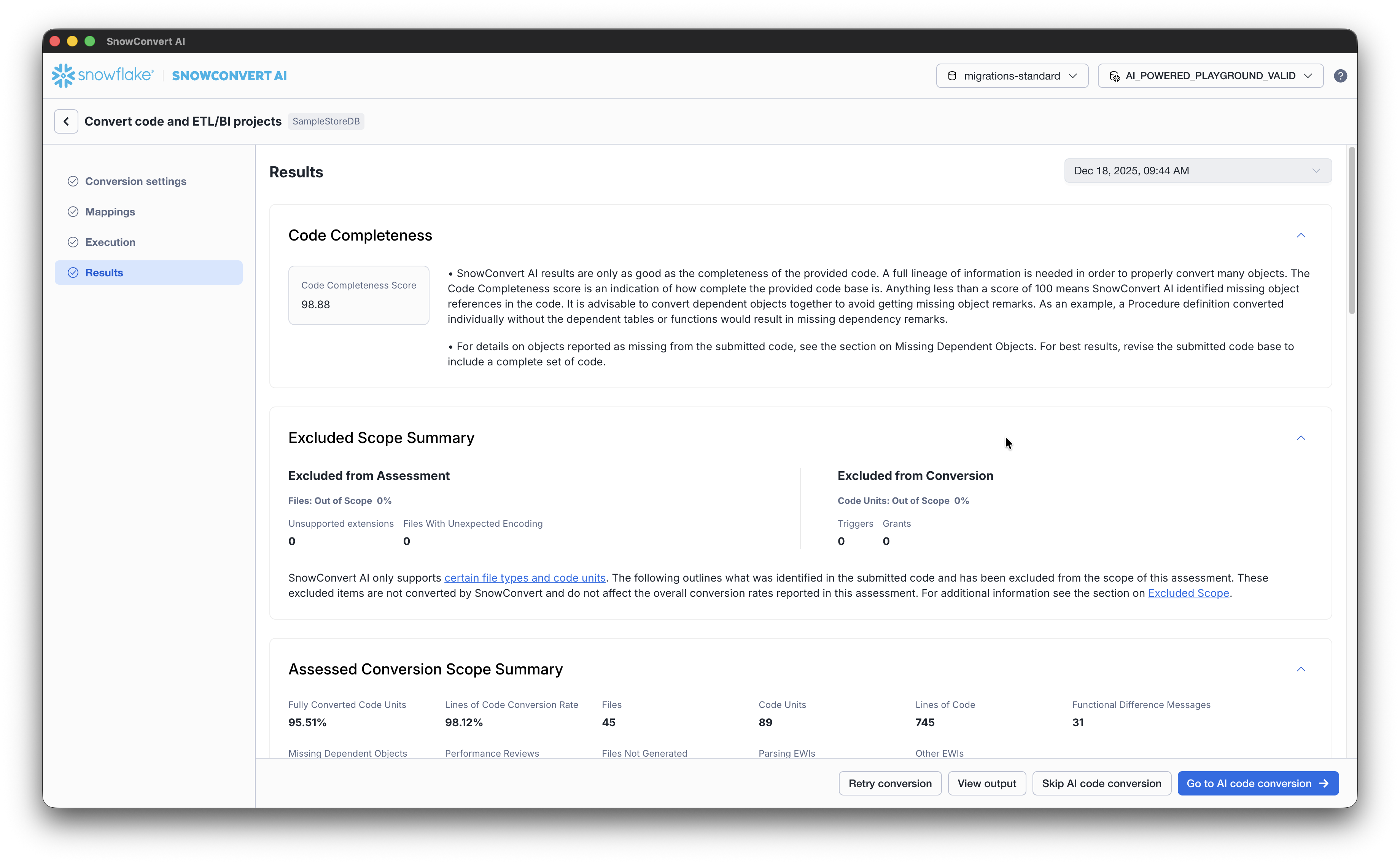 After the code conversion is complete, select Go to AI code conversion from the Results page.