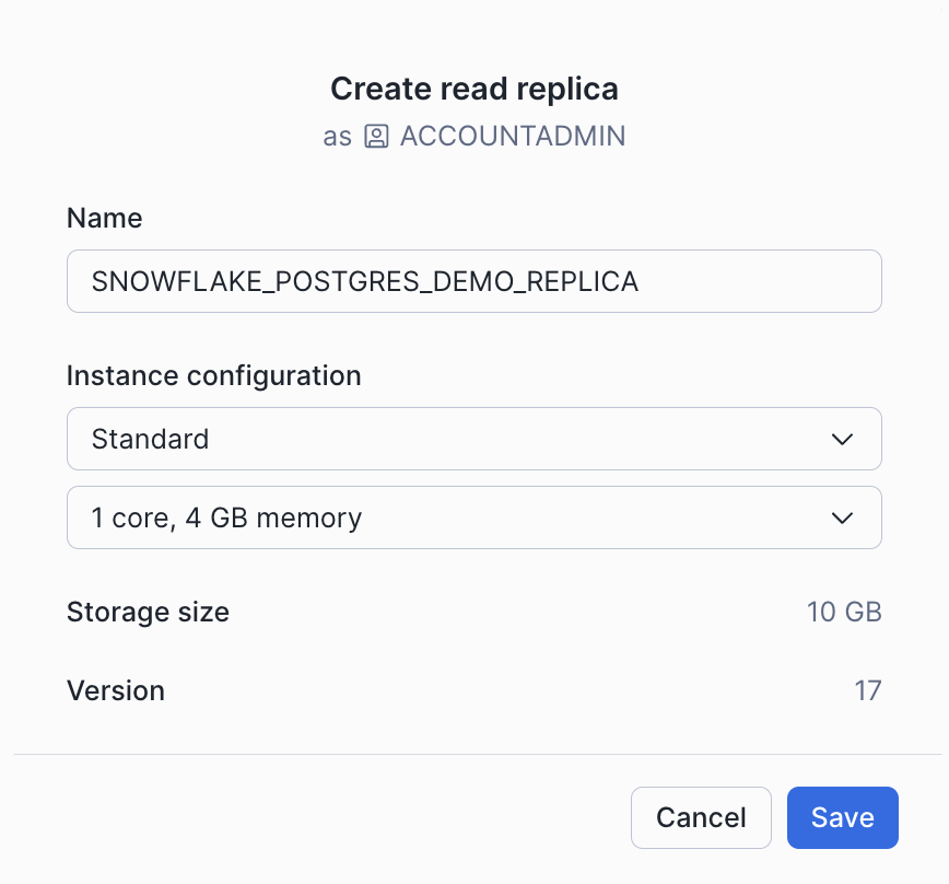 max_wal_senders设置(请参阅 Snowflake Postgres 服务器设置)。拥有副本的主 Postgres 实例无法被删除。在删除主实例之前,必须先移除其所有副本。