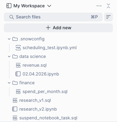 Only files uploaded or created in Snowsight persist: Only files that are uploaded or created through Snowsight persist across sessions.